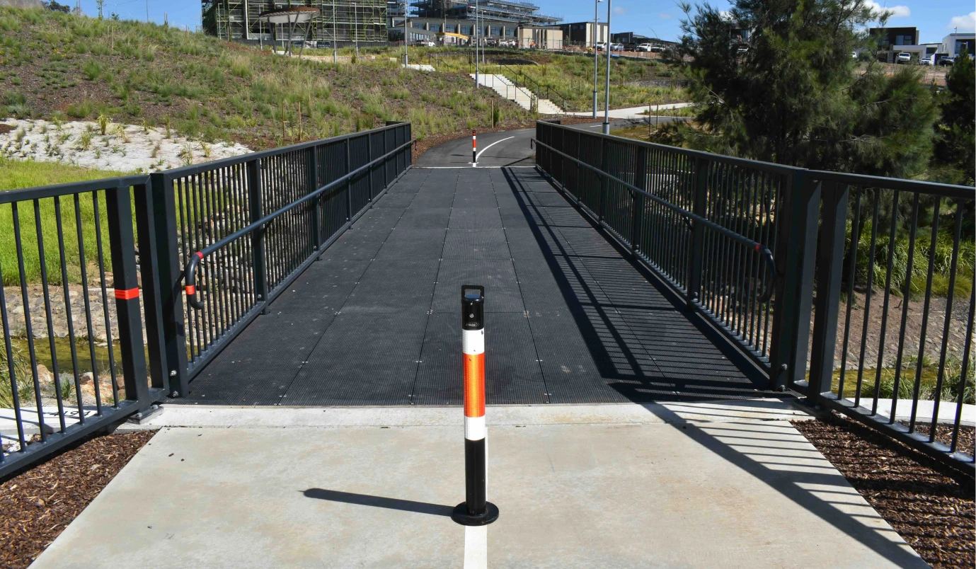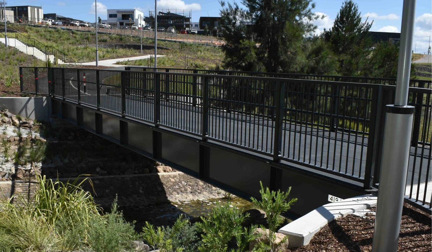 Designed to support pedestrian movement across a busy footpath route, the bridge plays a key role in improving the accessibility between the Denman shopping precinct and the neighbouring green spaces.