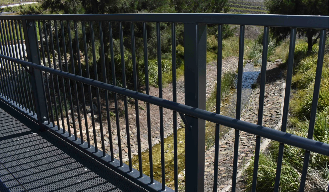 A key consideration for the project was installation safety, particularly the risk of working at height. To address this, a temporary handrail structure was pre-attached to the bridge beams and then disassembled while the permanent grating and balustrade panels were installed.