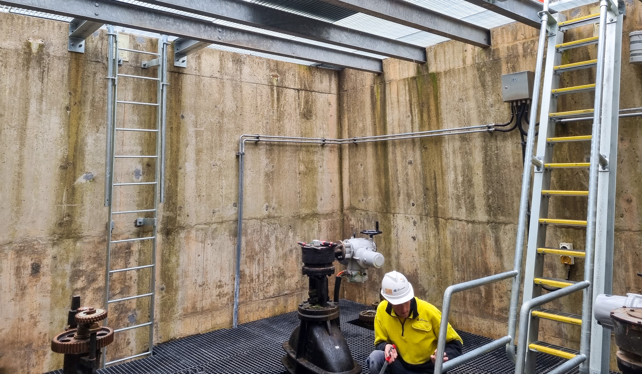 These works varied from roadside vehicle crash barriers along a main arterial road, access ladders within 14 metre deep sewage storage chambers or the creation of a new in ground PRV pit with our civil partner Complex Co.